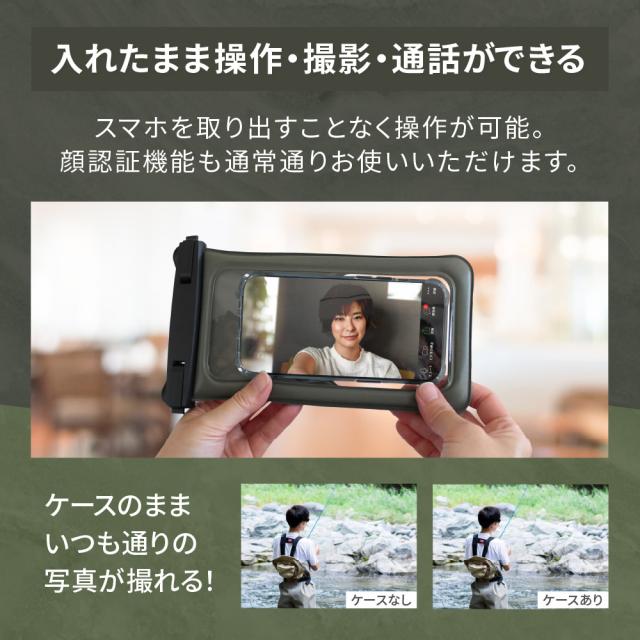 ※iPhone(7/8シリーズ、SE(第2/3世代))では、防水ケースに入れた状態だと指紋認証機能が使用できません。
