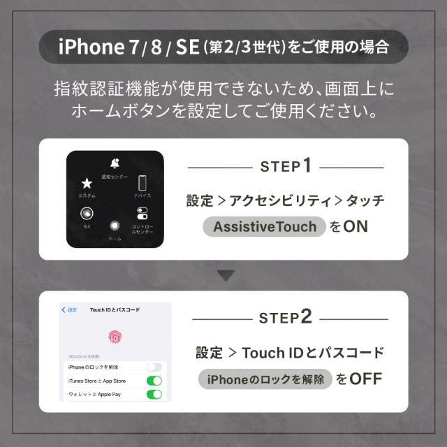 そのため「AssistiveTouch機能」を有効にして、画面上にホームボタンを設定してからご使用ください。