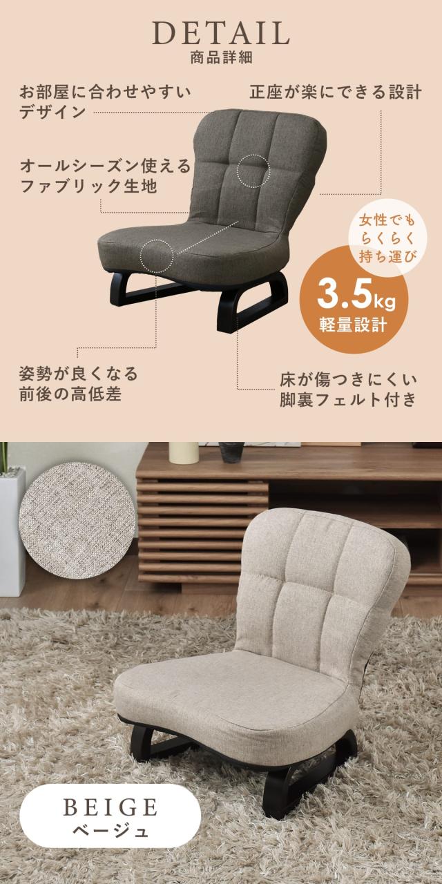 座椅子 チェア 椅子 コンパクト ソファ いす おしゃれ 腰痛 1人 背もたれ 高座椅子 正座椅子 座面高19cm 敬老 ジャスパー 新生活 ドリス