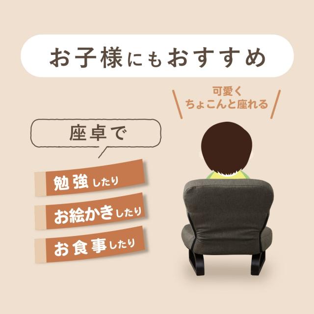 広めの座面で安定感があり、脚を崩して座っても快適。あぐら姿勢が取りやすく、和室でのくつろぎや読書、テレビ鑑賞に最適。床に直接座るより腰や膝への負担を軽減。背もたれが付きで長時間の座り姿勢でも疲れにくく、ゆったりとくつろげる仕様になっています。