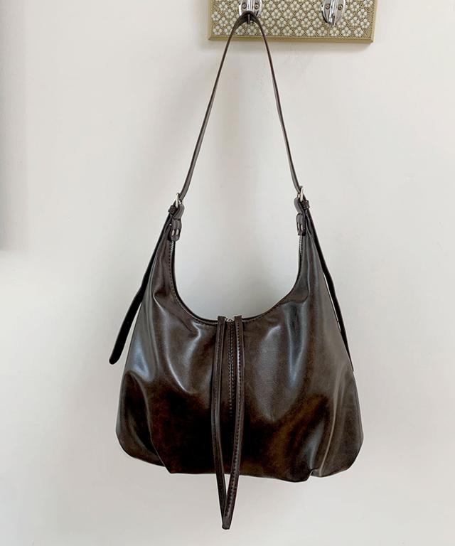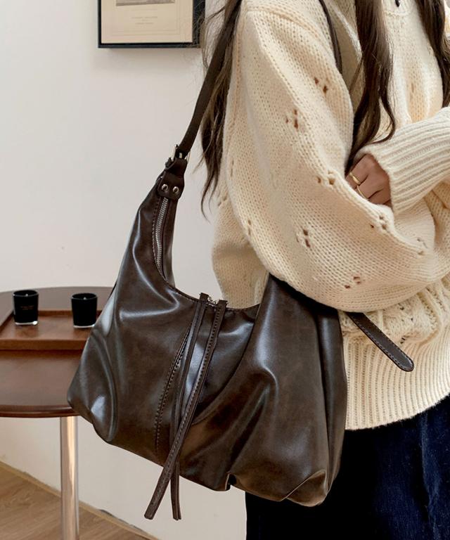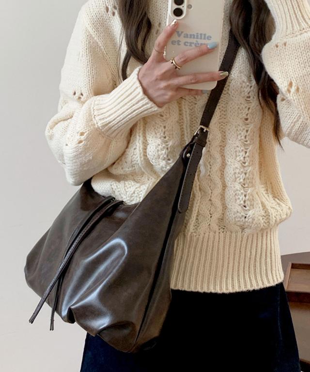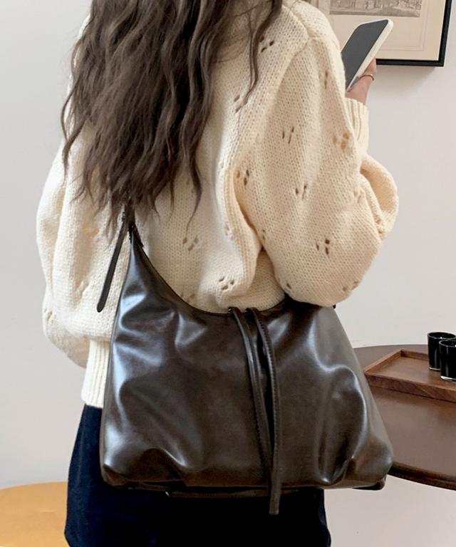 きれいめワンピースやカジュアルなデニムパンツコーデなど、どんな服にも合わせやすい上品なショルダーバッグに仕上げました。