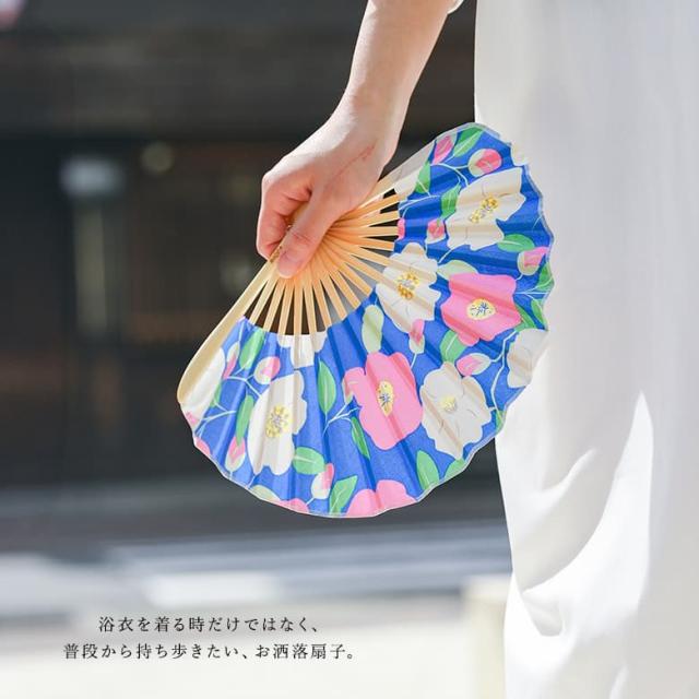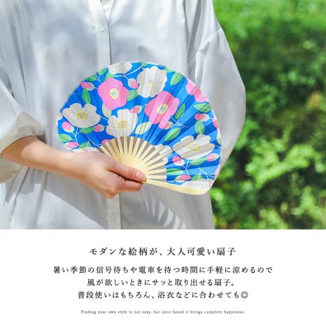『ブルーム扇子』※メール便可※【2】[扇子 女性 レディース せんす うちわ 団扇 おしゃれ ギフト プレゼント 小物 着物 浴衣 花柄 袋ケース付き 扇子袋 和装小物 母の日 夏 コンパクト 涼 涼しい かわいい 軽量 携帯 暑さ対策 シェル型 布扇子 モダン 上品]