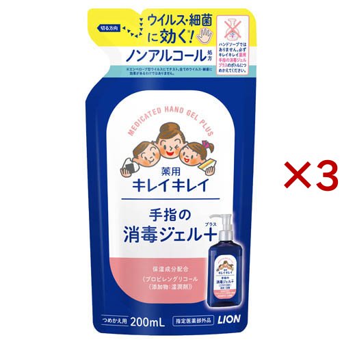 キレイキレイ薬用手指の消毒ジェルプラス つめかえ用(200ml×3セット)[消毒用アルコール]