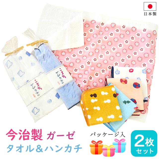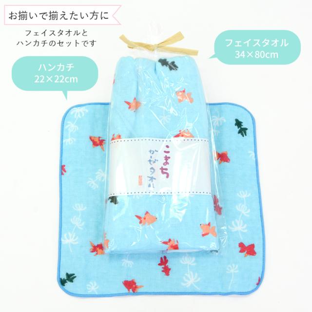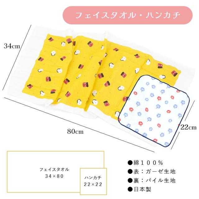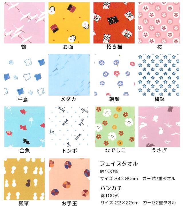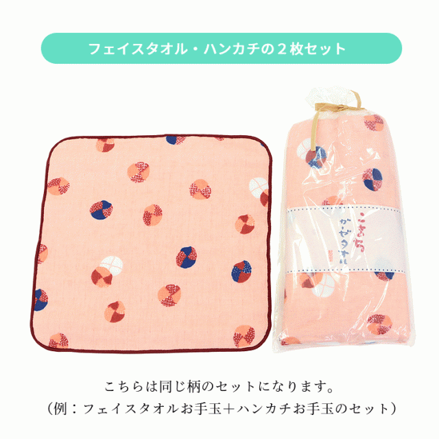 2枚セット:フェイスタオル1枚、ハンカチ1枚(同じ柄のセット)
