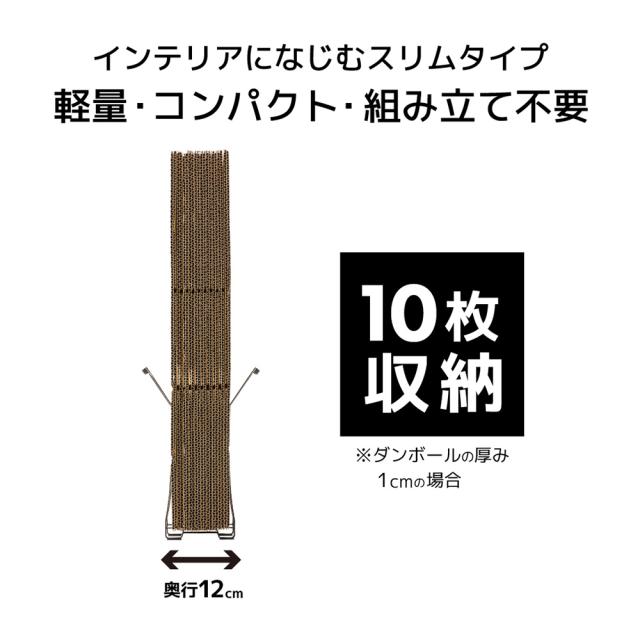 厚み1cmのダンボールであれば約10枚くらい収納可能。