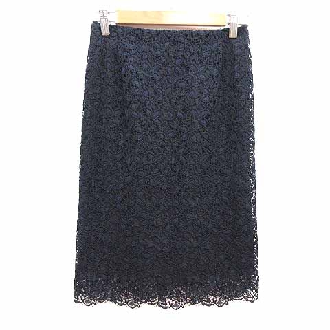 【中古】ロペ ROPE タイトスカート ひざ丈 総レース 36 S 紺 ネイビー /YK レディース