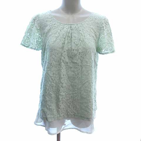 【中古】グローブ grove ブラウス フェイクレイヤード シフォン 総レース 半袖 L 緑 ライトグリーン /YK レディース