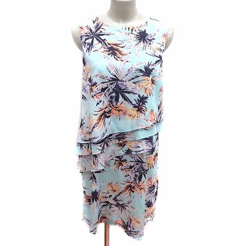 【中古】ブージュルード Bou Jeloud ワンピース ミニ 総柄 ノースリーブ 38 M 水色 ライトブルー /YK レディース