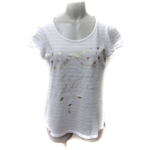 【中古】フランシュリッペ franche lippee カットソー ボーダー 半袖 M ベージュ /YI レディース