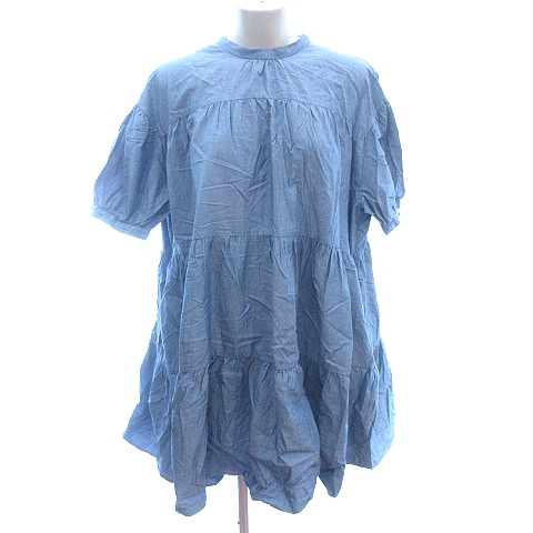 【中古】ビス ViS シャツワンピース ミニ バックリボン 五分袖 F 水色 ライトブルー /AU レディース