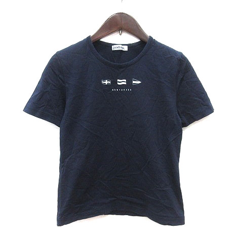 【中古】ニューヨーカー NEWYORKER Tシャツ カットソー クルーネック プリント 半袖 M 紺 ネイビー 白 レディース