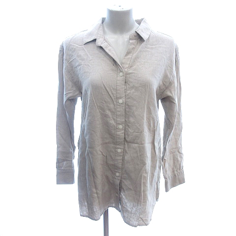 【中古】ベイフロー BAYFLOW BASIC シャツ ブラウス スキッパーカラー 麻混 リネン混 長袖 3 M ベージュ レディース