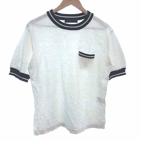 【中古】 Sense of Place by Urban Research Tシャツ カットソー クルーネック 半袖 麻混 リネン混 M 白 紺 メンズ