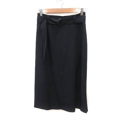 【中古】コムサモデルズ タイトスカート ミモレ ロング ピンストライプ ウエストマーク 7 紺 ネイビー 白 レディース