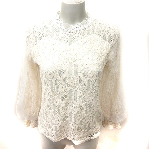 【中古】ディーホリック DHOLIC シャツ ブラウス 長袖 総柄 刺繍 ライトベージュ /RT レディース