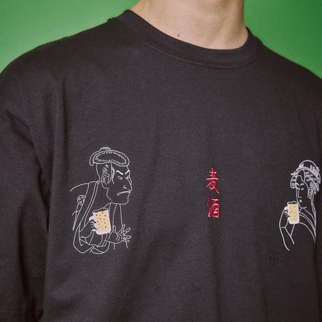 歌舞伎スケーター TEE 酔いどれ( 酔っ払い)、 お酒をテーマにした様々なデザインを落とし込んで展開する日本発のアパレルブランド。