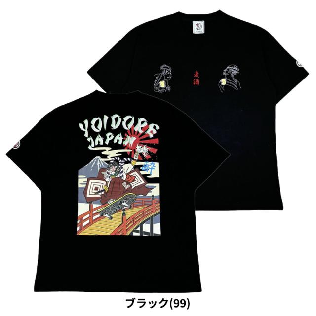 ヨイドレ 半袖Tシャツ ユニセックス 酔いどれ 歌舞伎スケーターTEE 漢字 ルーズシルエット トップス