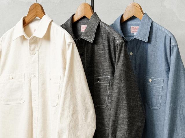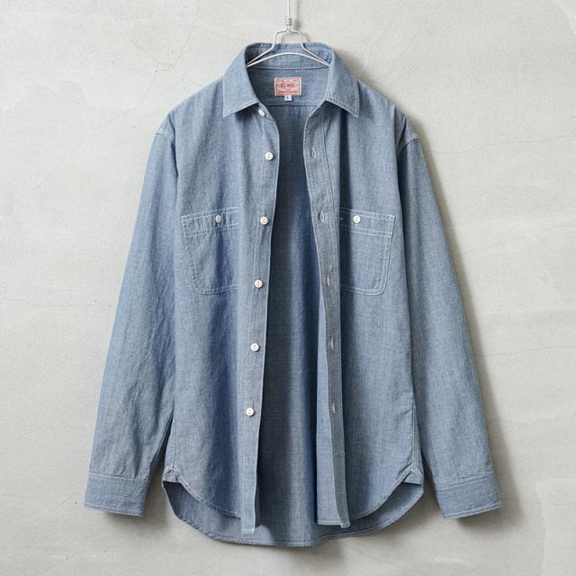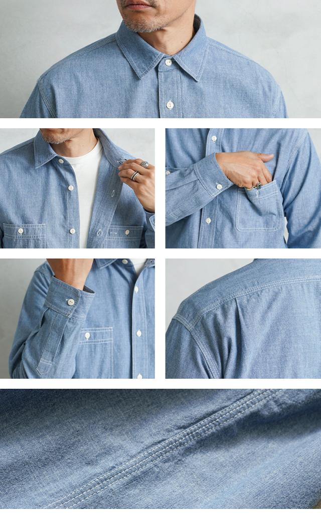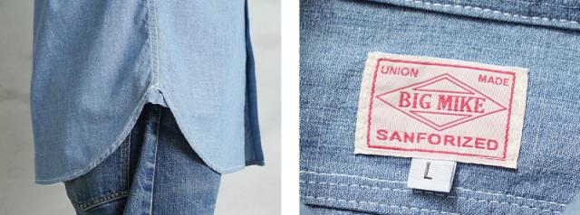 BIG MIKEから、着心地柔らかで風合い豊かなシャンブレーシャツが登場しました。生地は吸放湿性に優れたコットン100%を使用。洗いざらしの雰囲気にサラッとした着心地の良さでシーズンレスの着用可能です。耐久性のある3本針仕様のマチの縫製や擦れるのを防いでくれる猫目ボタンなどヴィンテージアイテムなどに見られる当時のディティールを忠実に再現しており、雰囲気抜群のアイテムに仕上がってます。