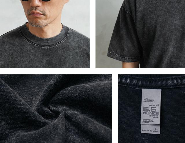 LOS ANGELES APPAREL ロサンゼルスアパレル L-1801MW 6.5oz ガーメントダイ ショートスリーブ クルーネックTシャツ ミネラルウォッシュ MADE IN USA【T】|メンズファッション アメカジ 半袖 ビンテージ アメリカ製 USA製 おしゃれ