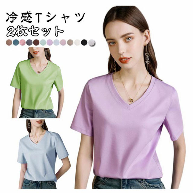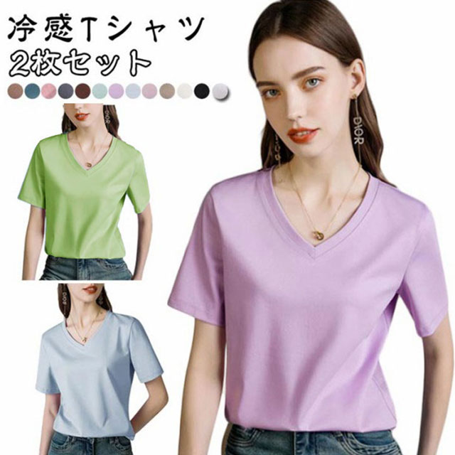 2枚セット Tシャツ UVカット 半袖 冷感Tシャツ レディース 汗ジミ防止 汗染み対策 無地 オーバーサイズ ビッグシルエット トップス tシャツ カットソー 速乾 ストリート ラッシュガード 夏 接触冷感 通気性 軽量 ドライ 薄手 涼しい おしゃれ 可愛い 体型カバー 送料無料