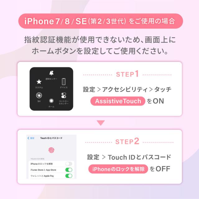 そのため「AssistiveTouch機能」を有効にして、画面上にホームボタンを設定してからご使用ください。