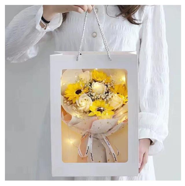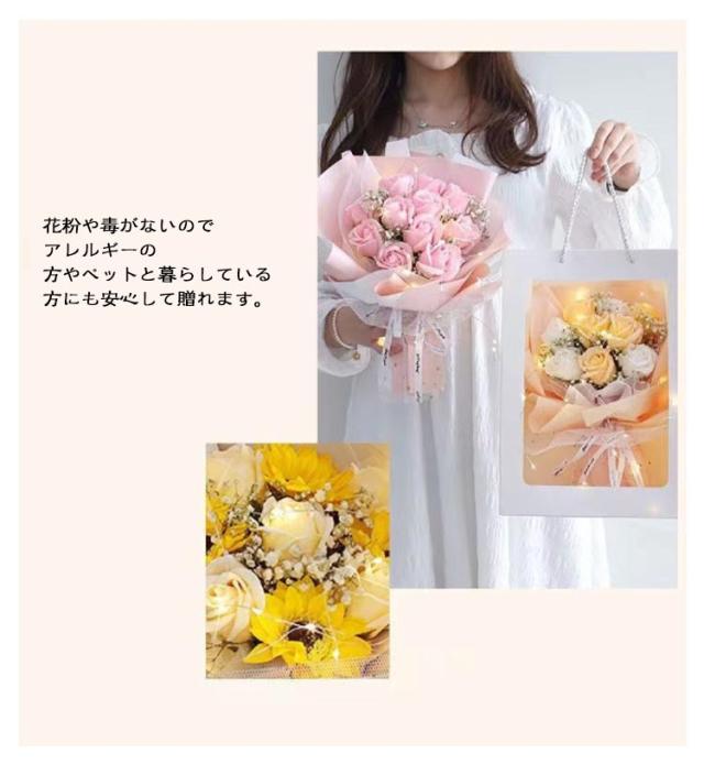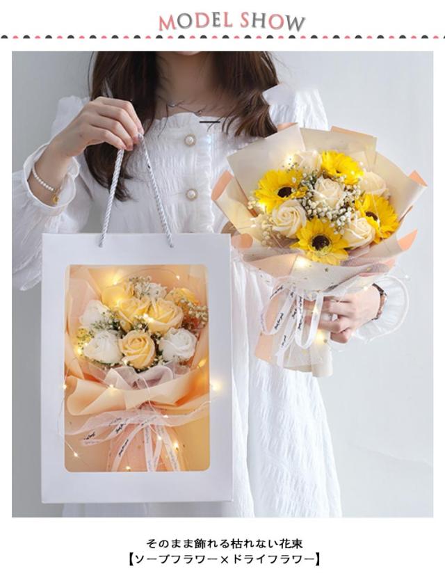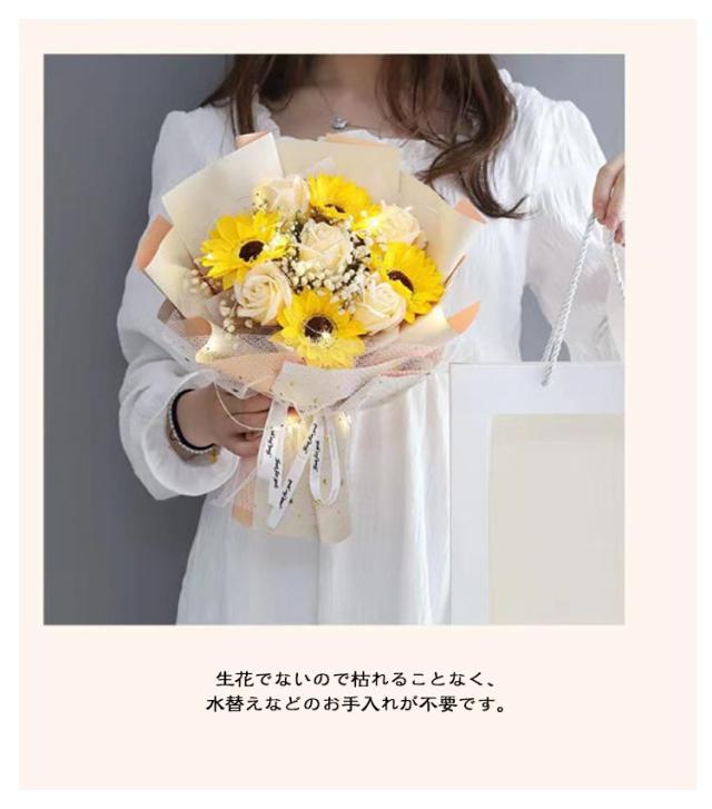 母の日ギフト 花 花束 造花 ドライフラワー 誕生日プレゼント バラ アレンジメント ソープフラワー 結婚式 ブーケ 結婚祝い オシャレ ひまわり ledライト付き ソープフラワーギフト お祝い 退職 発表会 退職祝い 卒業式