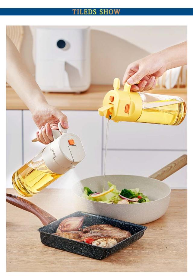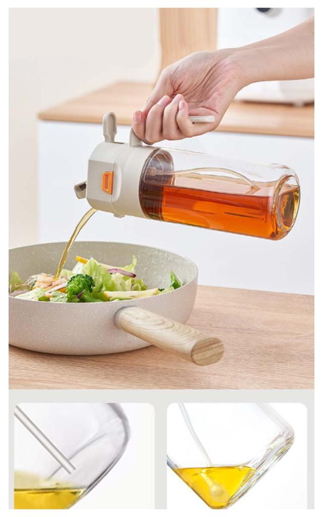 オイルスプレー オイルスプレー 片手操作 オリーブオイル 2in1 片手操作 ボトル スプレー オイルスプレー 600ml 油 醤油差し お酢 ガラス瓶 料理用 液だれしない 液だれしない 油さし オイル差し