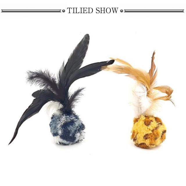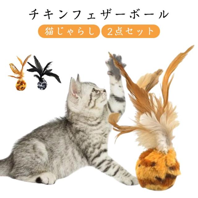 ストレス解消 チキンフェザーボール 羽根ボール 新しい猫インタラクティブボールおもちゃ ヒョウ柄 ペットおもちゃ 猫じゃらし 室内ペット猫ゲームおもちゃ 羽根付きボール 2点セット 運動不足対策 猫のおもちゃ 一人遊び