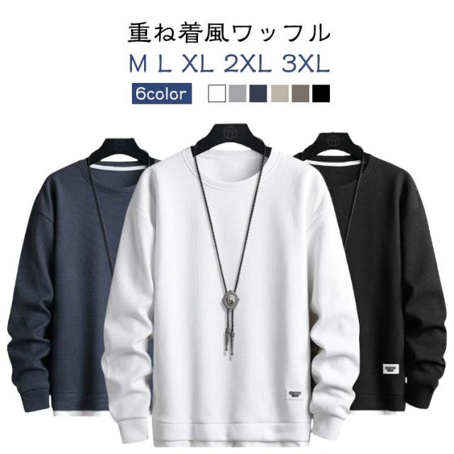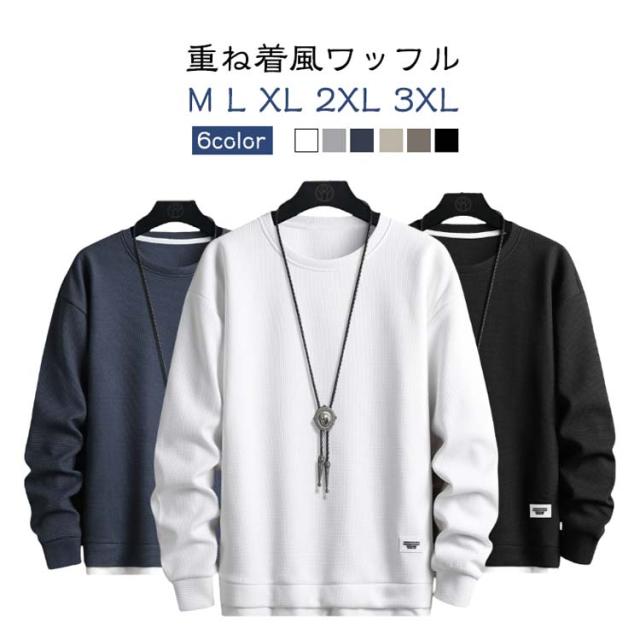 | 【M L XL 2XL 3XL】 【6color】 【重ね着風ワッフル】 使いまわしやすいクルーネック、カラーバリエーションも普段使いしやすいカラーを揃えました。 一枚で着てもよし、インナーとして着てもよしな、色違いで持っておきたい便利な一着です。 | |