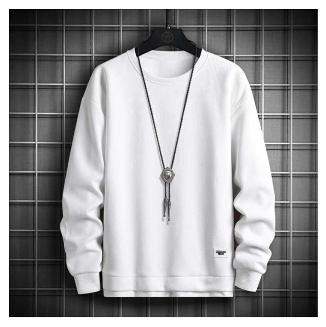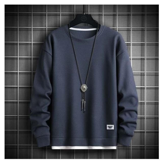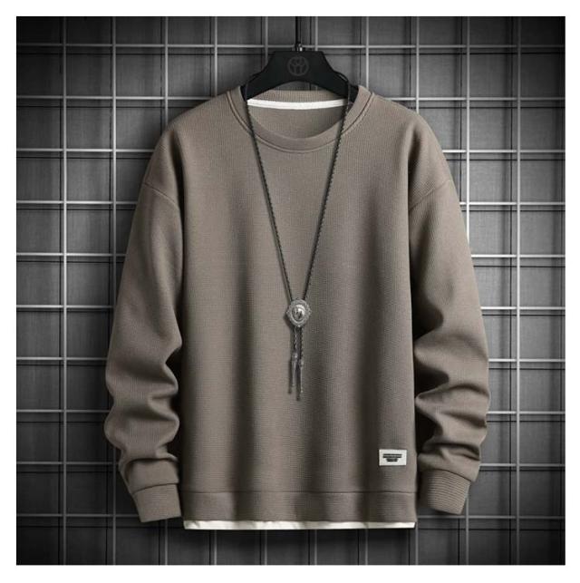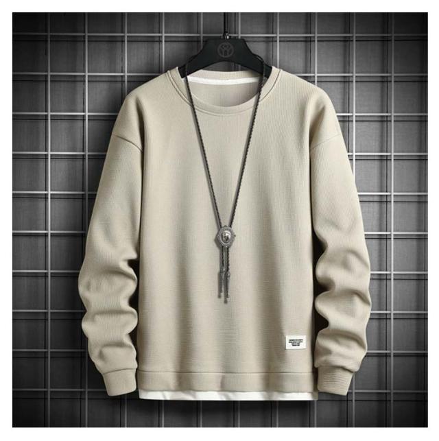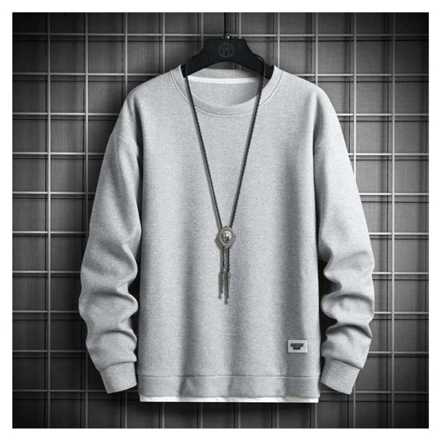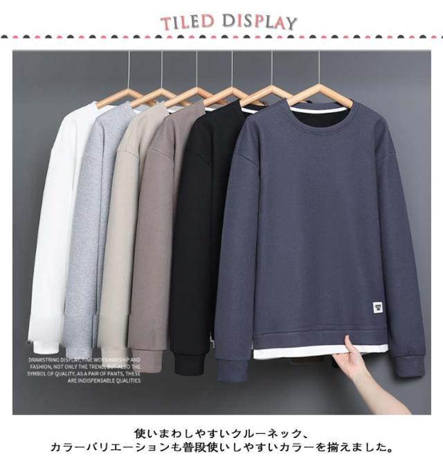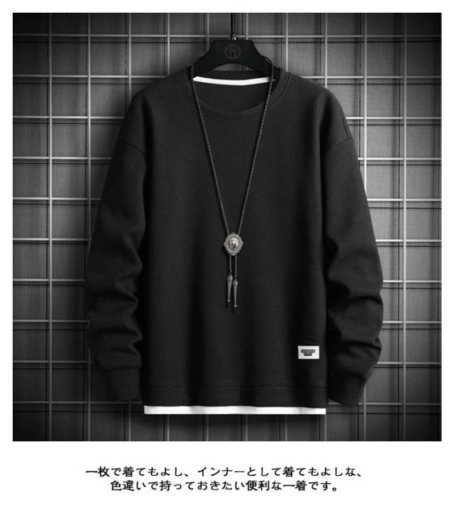 長袖Tシャツ メンズ 長袖 トレーナー トップス ワッフルTシャツ 無地 重ね着風 tシャツ ロンT プルオーバー カットソー 秋 カジュアル 春服 クルーネック シンプル ルームウェア パジャマ ロングTシャツ おしゃれ アウトドア