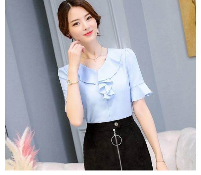 パーティ フリル レディース ブラウス 5分袖 大人 OL 5分袖 大きいサイズ フリルブラウス 春夏 フォーマル Vネック ママスーツ 入学式 オフィス 女性 卒業式 きれいめ シフォン ビジネス 入園式 フォーマル スーツ 無地 シンプル おしゃれ 卒園式 ママ 通勤