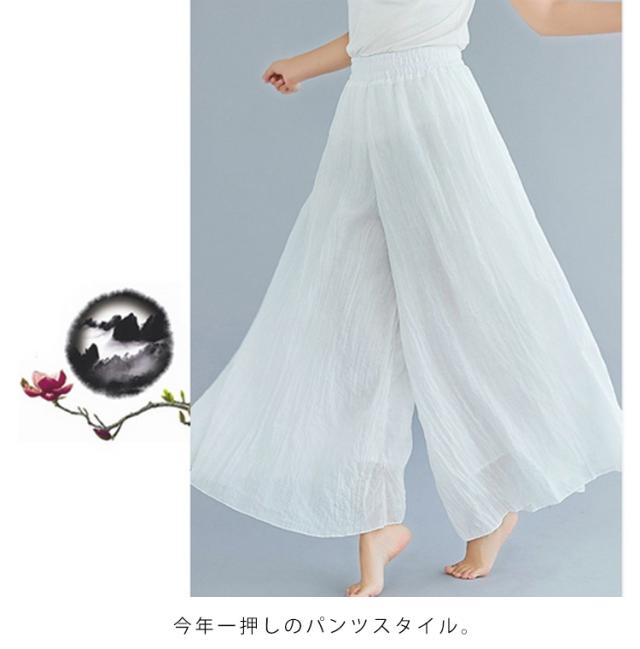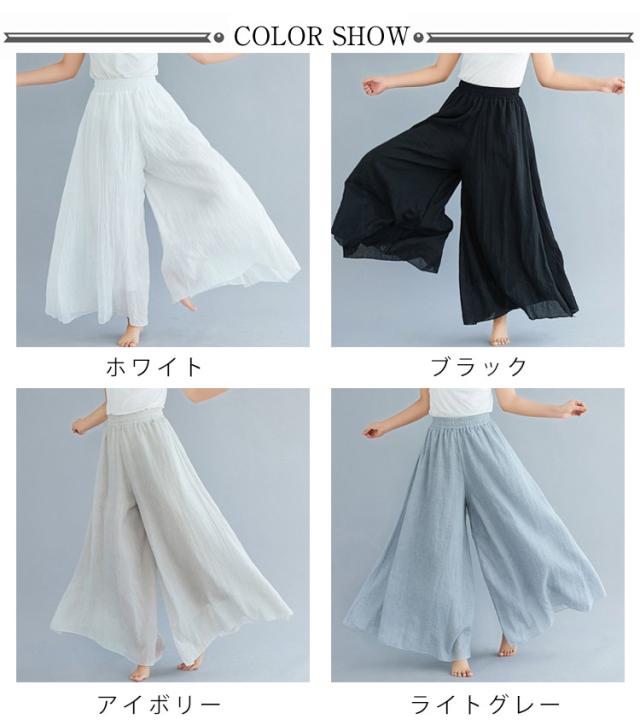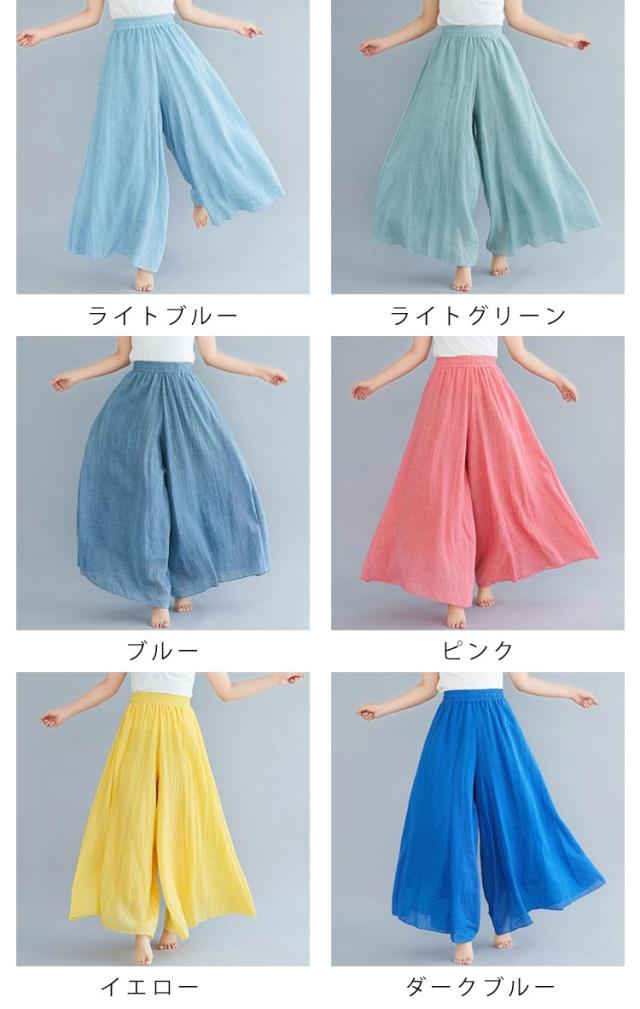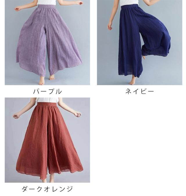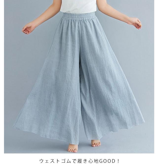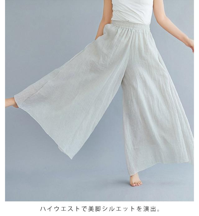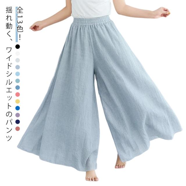 綿麻パンツ ロング丈 薄手 夏服 涼しい ウエストゴム ワイドパンツ リネン 95cm 体型カバー ガウチョパンツ レディース 長ズボン ハイウエスト きれいめ 無地 ゆったり 涼しい カジュアル 着回し易い シンプル 無地 85cm 通勤 大人 女性 ボトムス