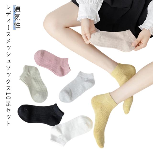 メッシュ靴下 綿混 通気性 くるぶしソックス 無地 靴下 スニーカーソックス レディースソックス 10足セット ソックス レディース 脱げない 蒸れない 10足組 メッシュ メッシュ靴下 フットカバー シンプル 通勤 通学 プレゼント ギフト