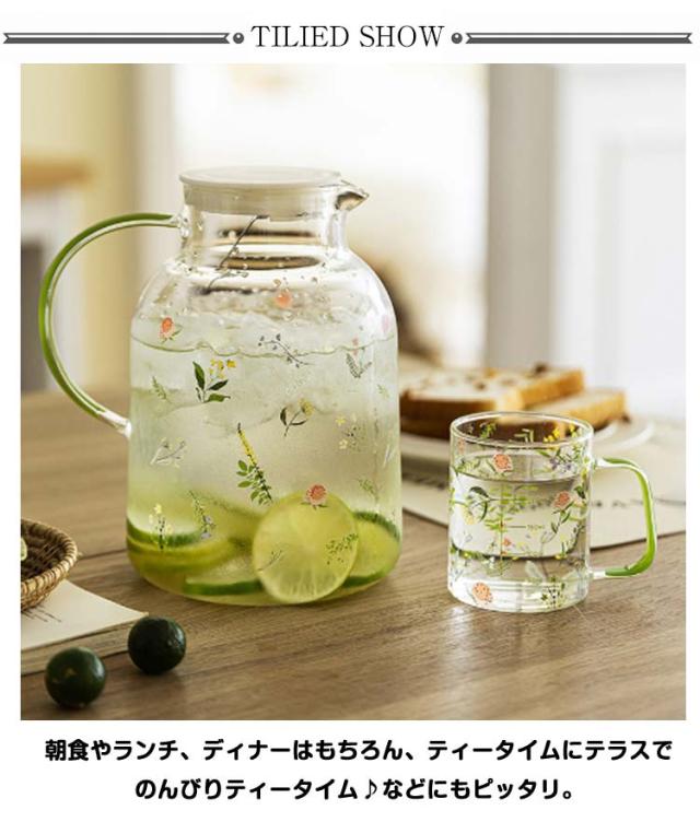 ガラスピッチャー 耐熱ガラス 花柄 1300ml ピッチャー フレーバーウォーター 1800ml 耐熱 麦茶 ポット ピッチャー ガラスピッチャー ガラス おしゃれ 耐冷 おしゃれ 可愛い 水差し 洗いやすい 麦茶ポット 冷茶ポット