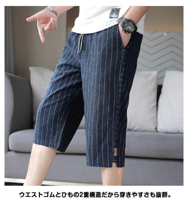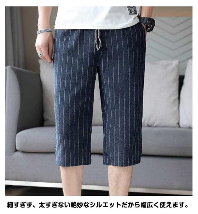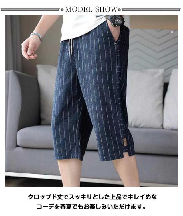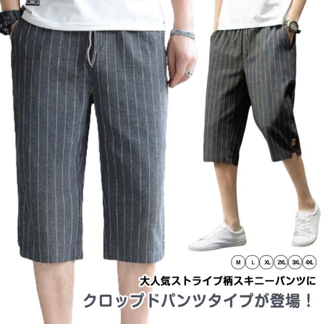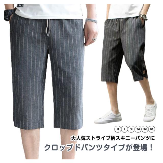 クロップド 夏 ストライプ柄 夏服 スキニー ポケット付き メンズ 大きいサイズ 紳士服 クロップドパンツ スキニーパンツ カジュアル ゴルフパンツ カジュアルパンツ 薄手 スリム 涼しい 7分丈 テーパード ウエストゴム クロップドパンツ 通勤 おしゃれ ギフト