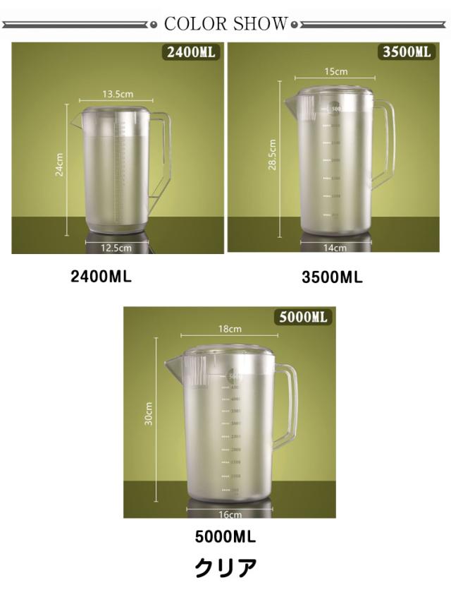 飲食店 5000ML .5L 麦茶 3500ML 2400ML 広口 大容量 5L 業務用 冷水筒 ピッチャー ピッチャー ウォータージャグ 冷水ポット 目盛付 卓上用 注ぎやすい 丈夫 割れにくい 2.4L 麦茶ポット お茶パック 水出し 飲料水 洗いやすい お手入れ簡単