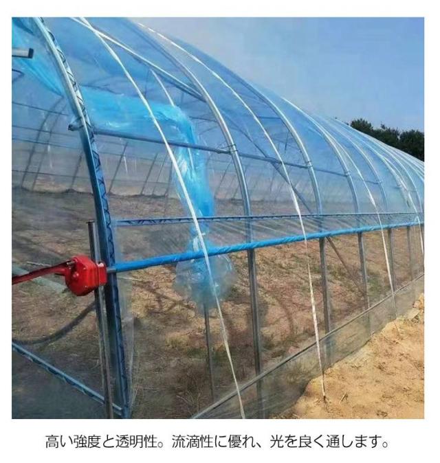 | 農業用フィルム 厚さ0.14mm 全長10m 幅6m 優れた保温力と耐久性がありトンネル栽培や雨よけ栽培に最適なフィルムです。 高い強度と透明性。流滴性に優れ、光を良く通します。 優れた透明性を維持するので長期展張でも問題ありません。 | |