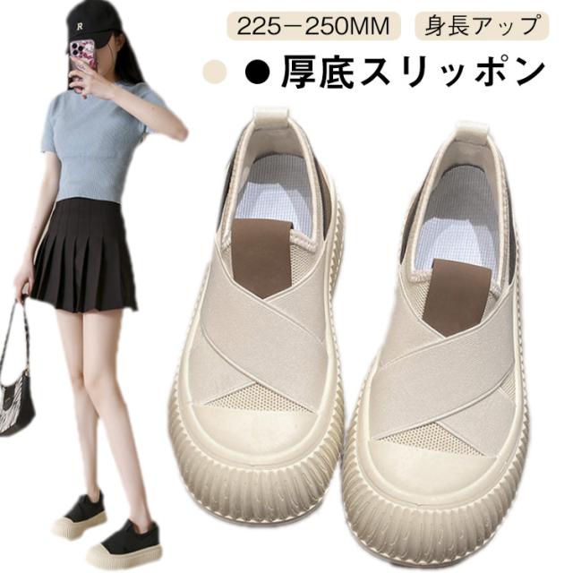 厚底スリッポン スニーカー 5センチ レディース 厚底スニーカー 外反母趾 春 夏 レディースシューズ 美脚 厚底 通気性 外反母趾 ウォーキングシューズ カジュアル 秋 ベージュ 黒