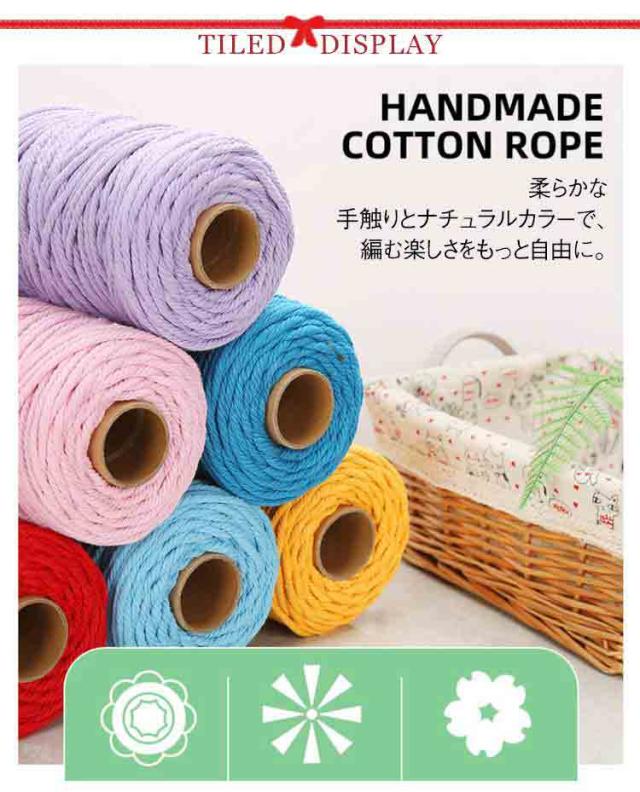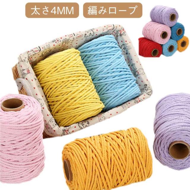 ハンドメイド用 毛糸 100M総長 4mm 編み紐 タペストリー材料 手芸素材 DIY チャンキーニット ウォールデコ 編み物 中太タイプ 毛糸 初心者向け