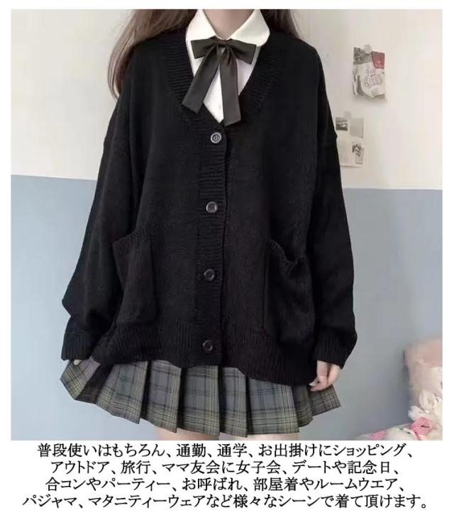 暖かい 長袖 ニットセーター 学生 学生服 JK制服 前開き カーディガン JK制服 スクールカーディガン 防寒 ニットカーディガン レディース スクールカーディガン 中学生 入学式 高校生 アウター 無地 Vネック カジュアル ゆったり 大きいサイズ 通学 通勤 スクール 春