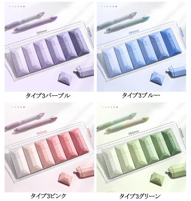 | 色 | タイプ1パープル タイプ1ブルー タイプ1ピンク タイプ1グリーン タイプ2パープル タイプ2ブルー タイプ2ピンク タイプ2グリーン タイプ3パープル タイプ3ブルー タイプ3ピンク タイプ3グリーン タイプ4パープル タイプ4ブルー タイプ4ピンク タイプ4グリーン |