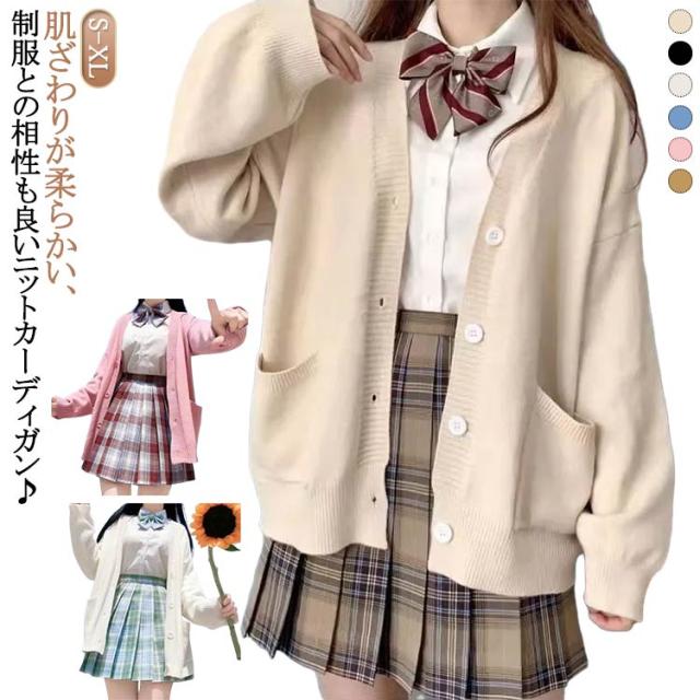 柔らかい Vネック 学生 高校生 入学式 長袖 学生服 カジュアル ニットセーター スクールカーディガン スクールカーディガン カーディガン 前開き レディース 中学生 JK制服 ニットカーディガン アウター JK制服 防寒 暖かい ゆったり 大きいサイズ 通学 通勤 スクール 春