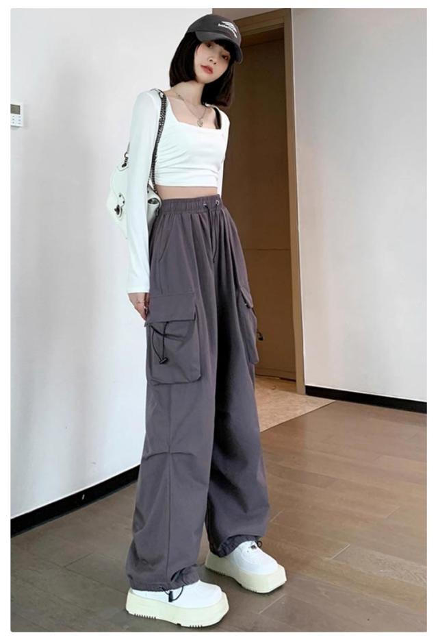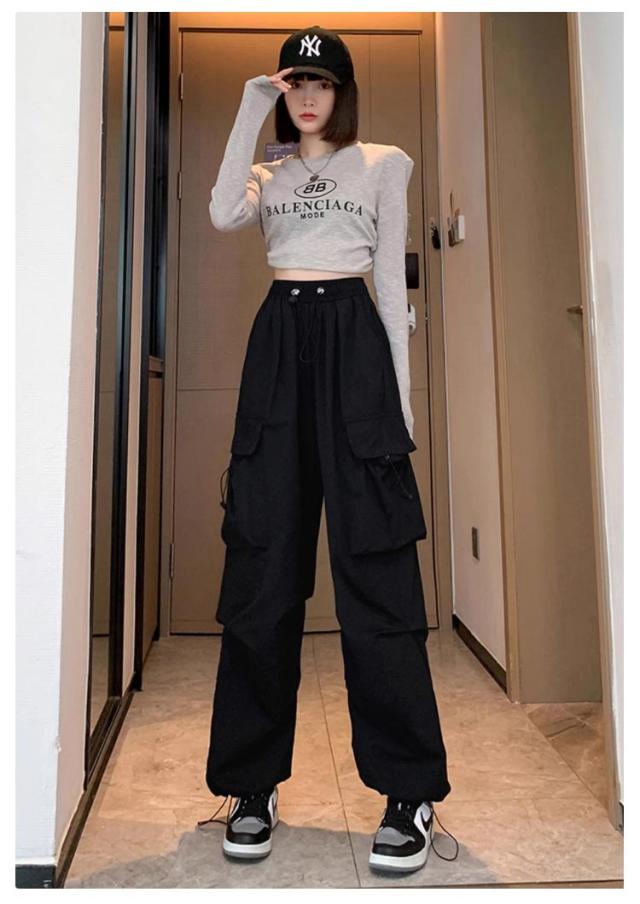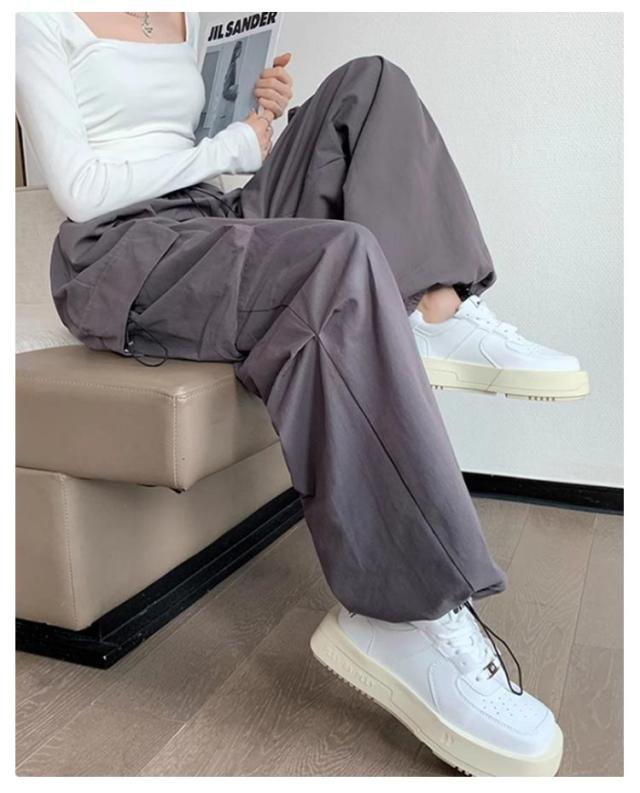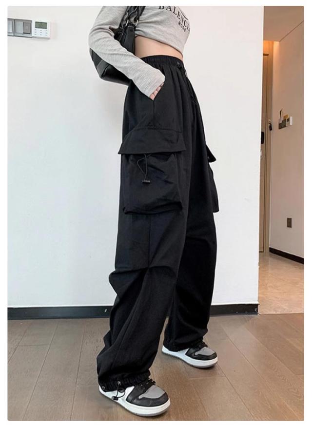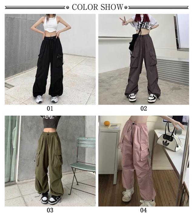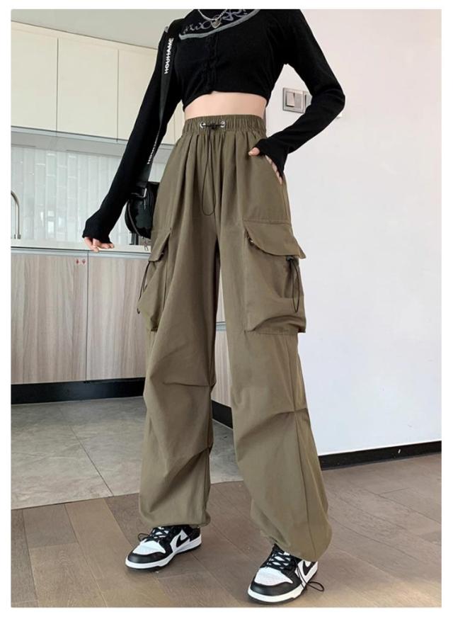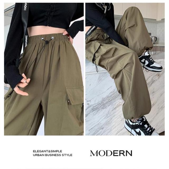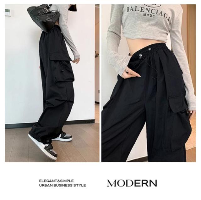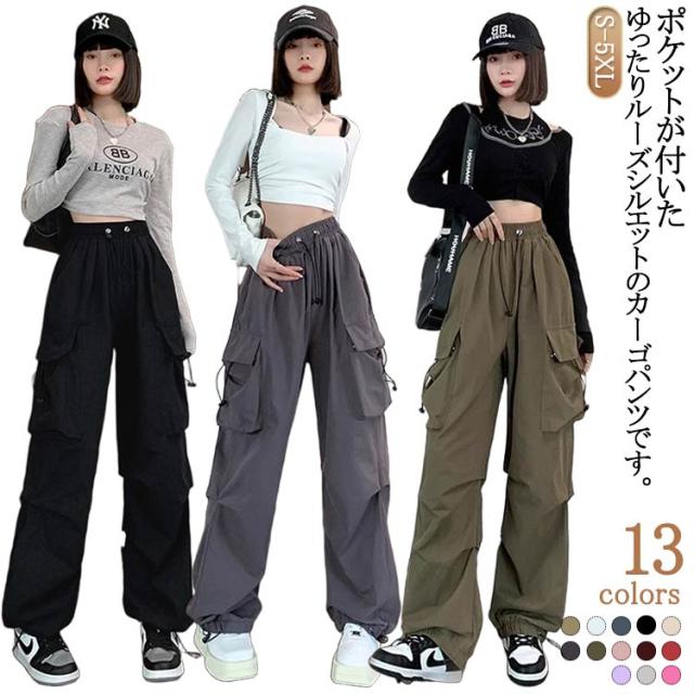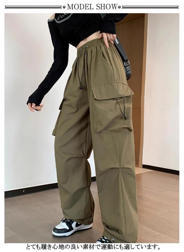 韓国ファッション レディース ボトム 長ズボン カーゴパンツ かっこいい ダンス ヒップホップ 韓国 オールシーズン カーゴパンツ トレンド ジョガーパンツ ミリタリーパンツ 太め ゆったり 黒 カーキ 大きいサイズ サイドポケット パラシュートパンツ