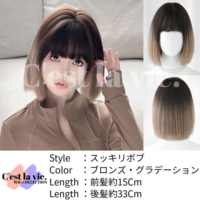 ウィッグ ボブ カット グラデーション ブロンズ ブラウン フルウィッグ 前髪あり 医療用 かつら ネット付き 自然 バレない 普段使い 即日出荷 送料無料