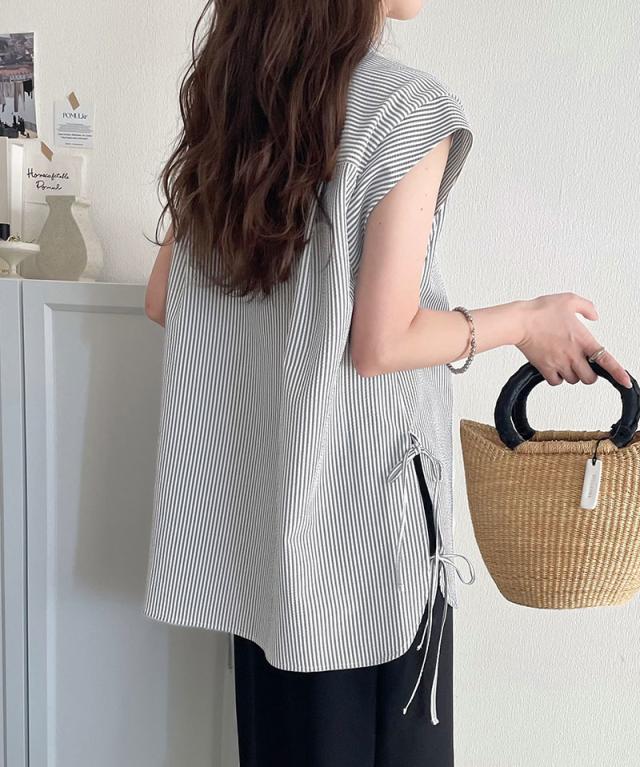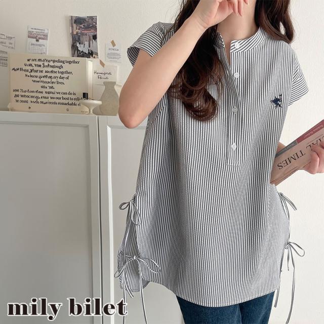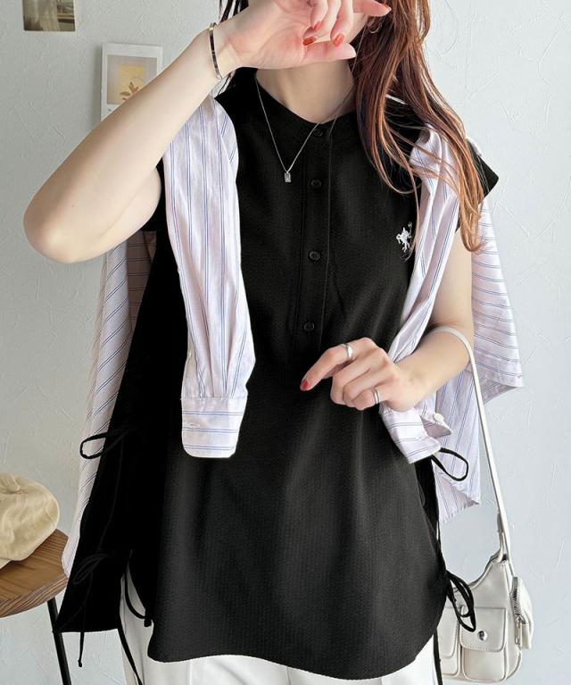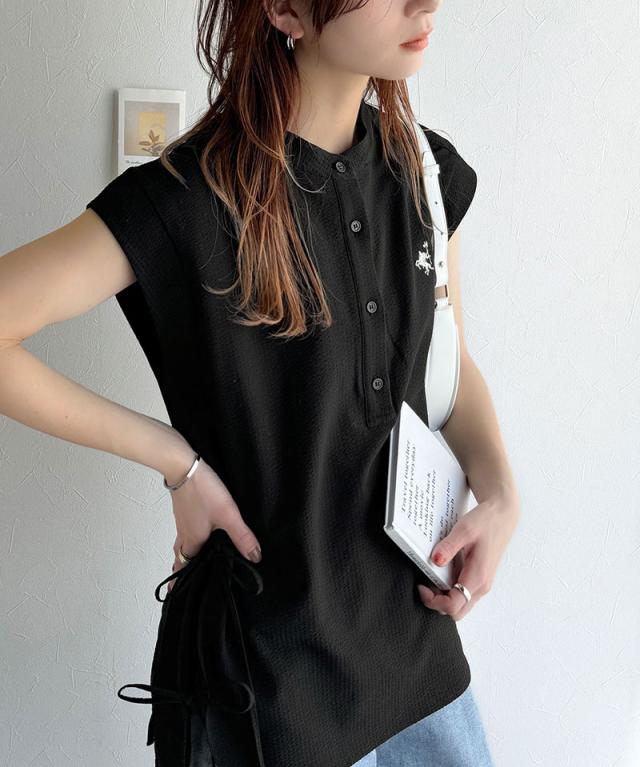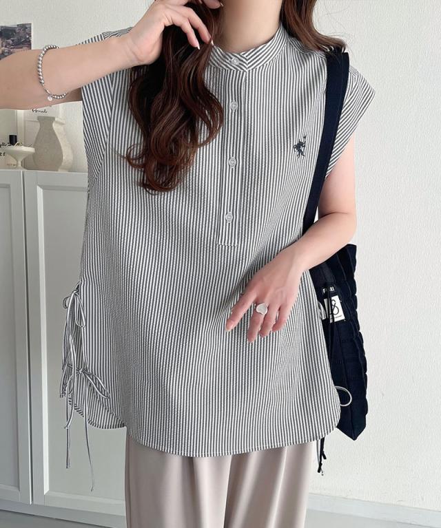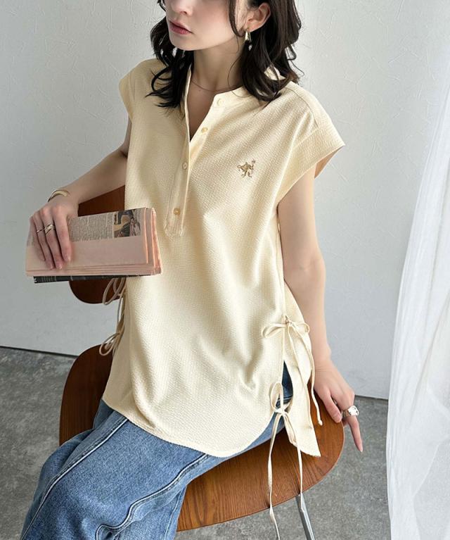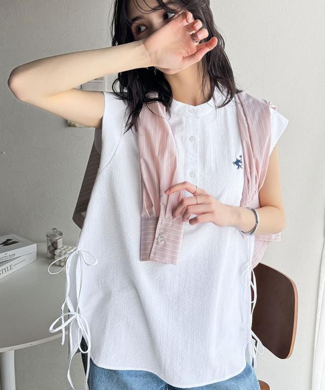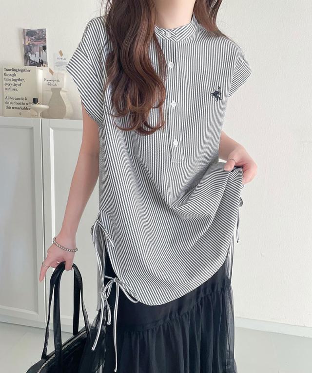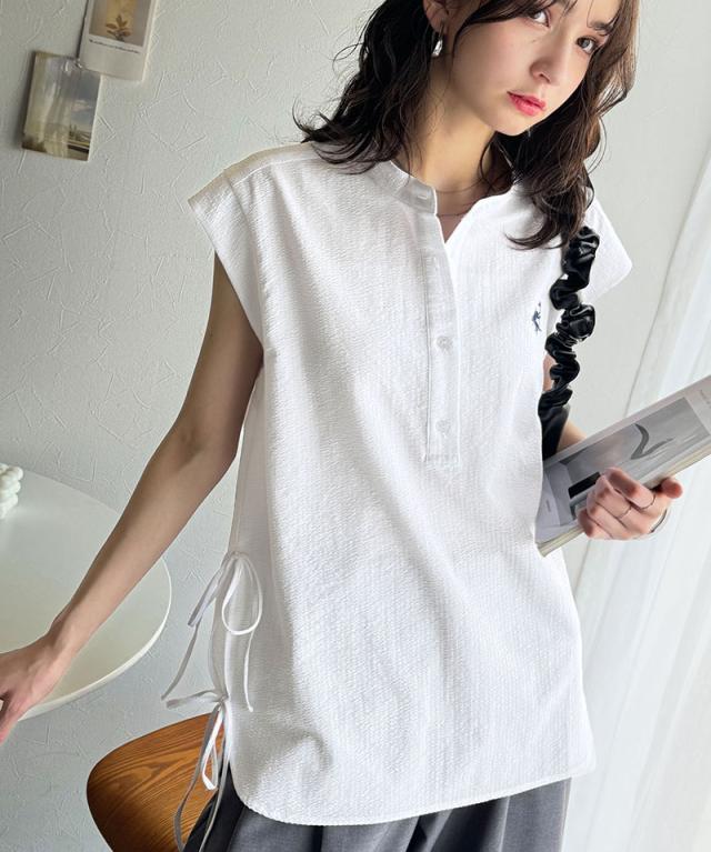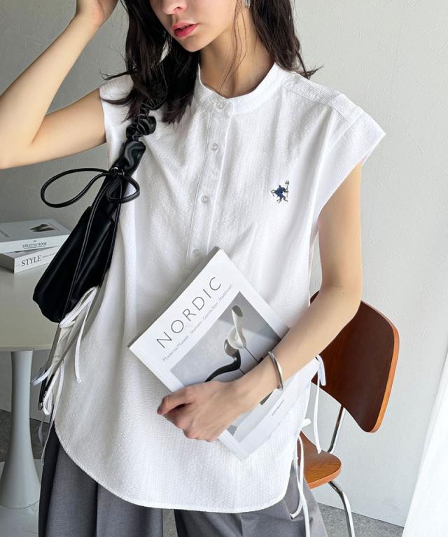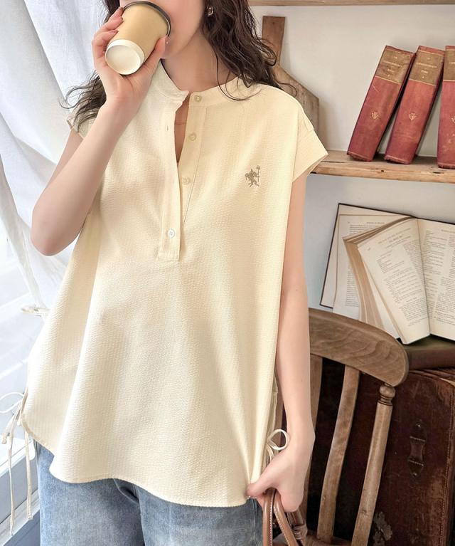 クラシカルエルフ冬新作 レディース トップス シャツ・ブラウス サイドダブルリボン ワンポイント刺繍 サッカー素材 フレンチスリーブ トップス 夏 ブラウス シンプルデザイン 涼しい 快適 爽やか 涼やか トレンド 2025ss ce1260346