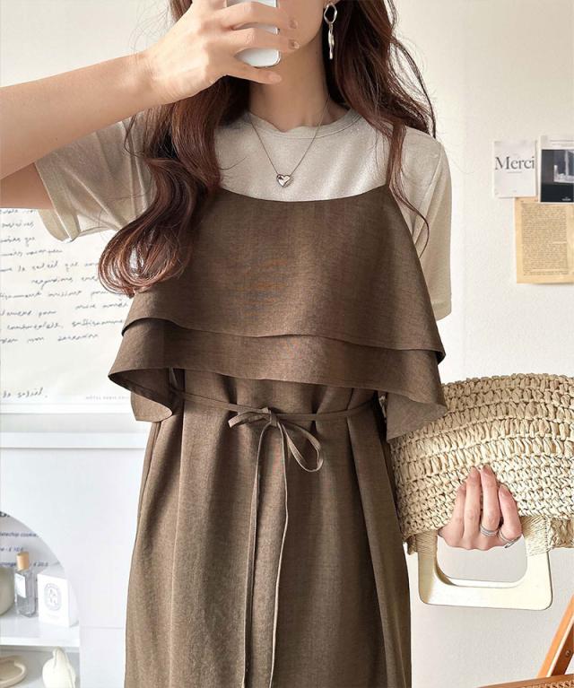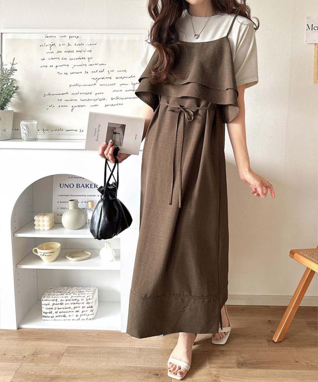 クラシカルエルフ春新作 レディース ワンピース/ドレス ワンピース ダブルフリル キャミワンピース ロング丈 上品シルエット 大人可愛い リラクシー 華やかシルエット ボリューム感 シンプルデザイン コーディネート幅広 2026ss ce1265002