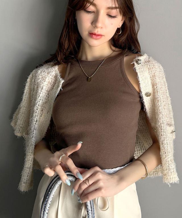 クラシカルエルフ冬新作 mily bilet レディース トップス タンクトップ シンプル カップ付き テレコリブ アメスリ タンクトップ スタイルアップ ヘルシー 抜け感 伸縮性 リブ生地 フィット 女性らしい シルエット 2025ss mi1029123