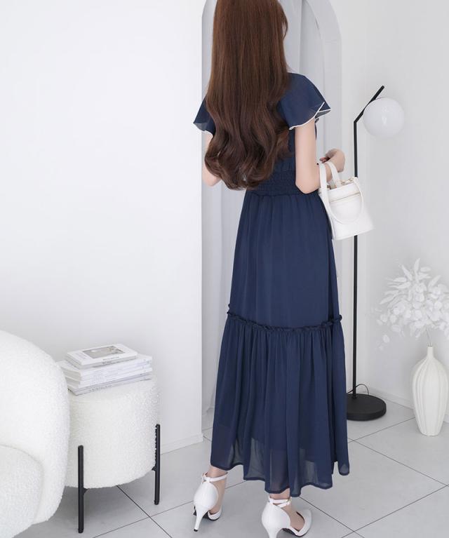 ★【mily bilet】今季上品に大活躍♪クロスデザイン楊柳使いフリル襟ワンピース★