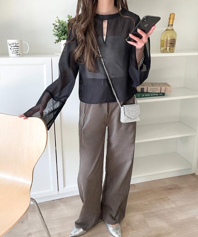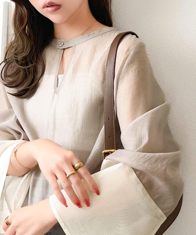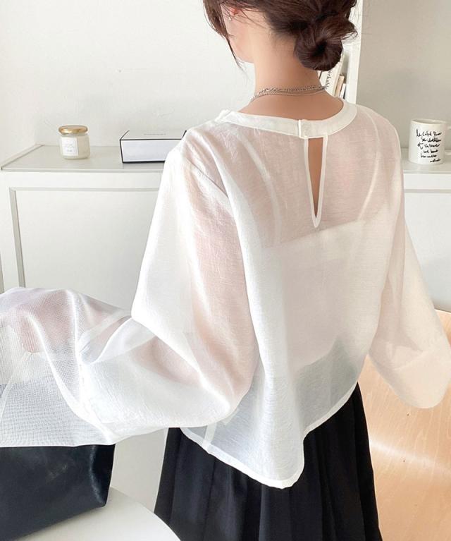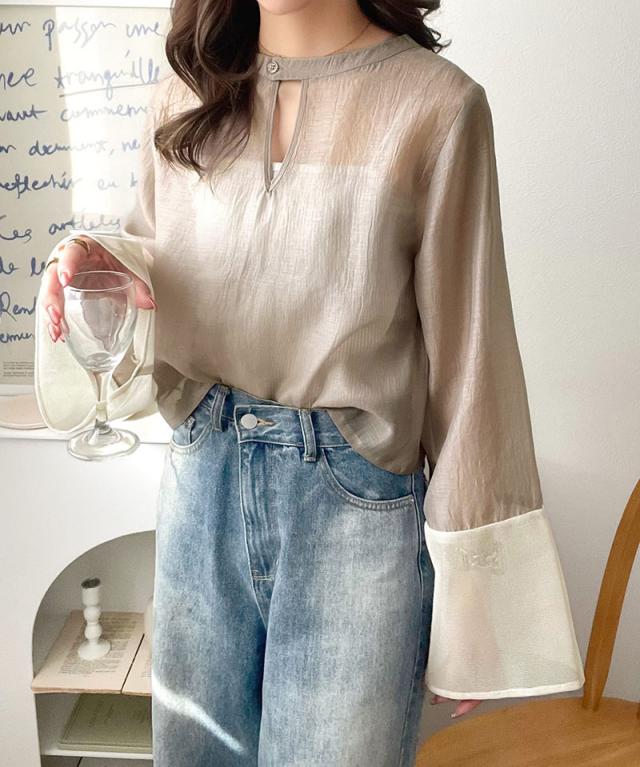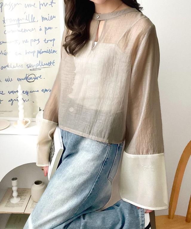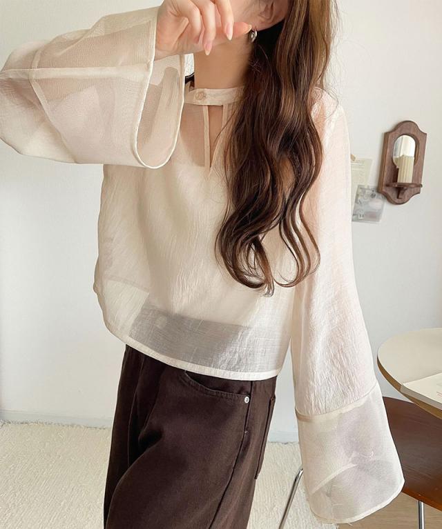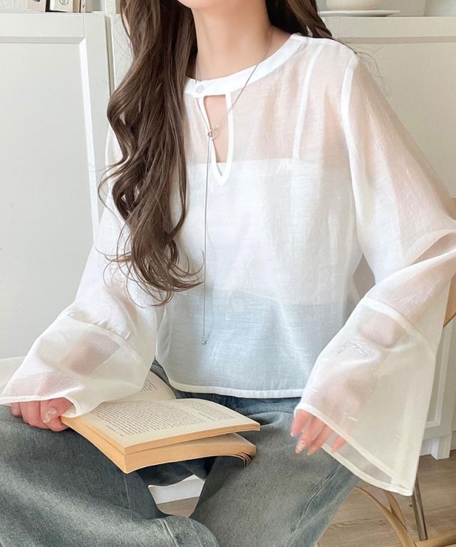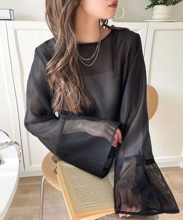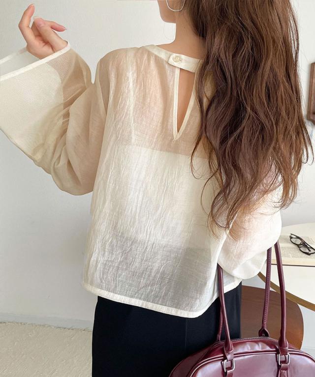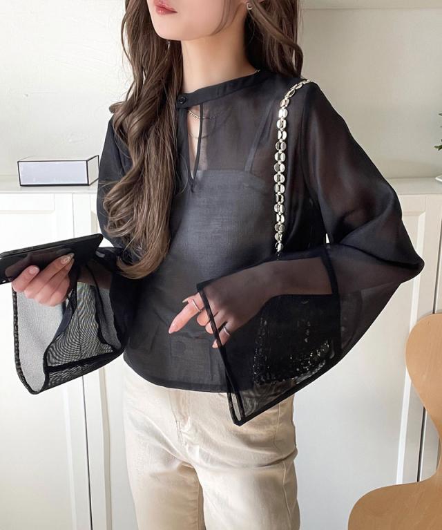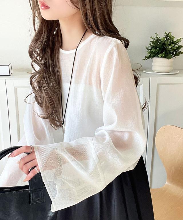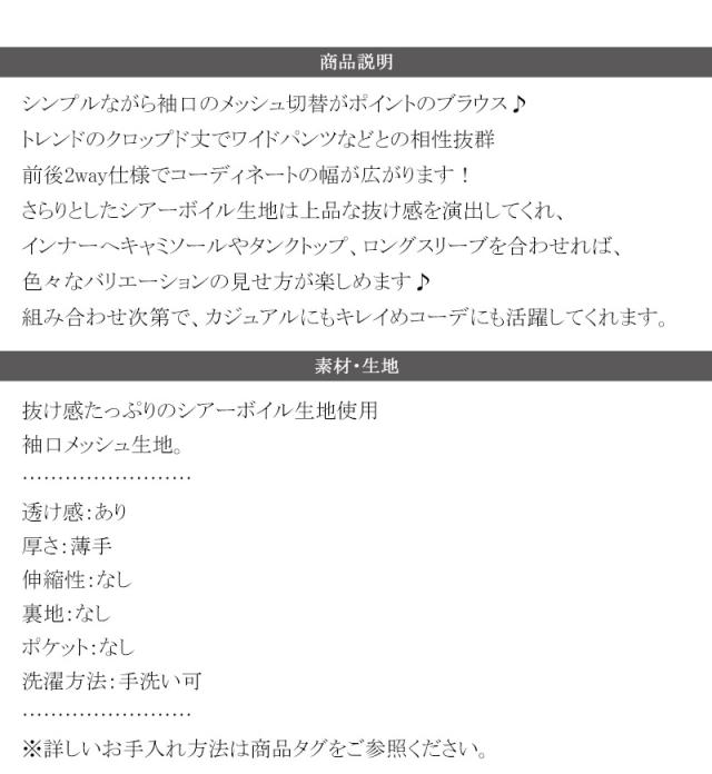 クラシカルエルフ秋新作 レディース トップス シャツ/ブラウス 袖口メッシュ 抜け感 前後2WAY シアーオーバートップス 長袖 カットデザイン 透け感 シアーブラウス メッシュ切替 お洒落 着回し 万能 トップス 2025ss ce1240073