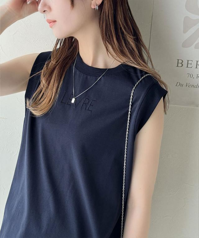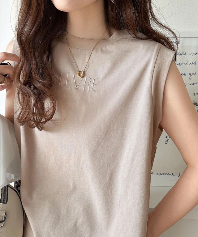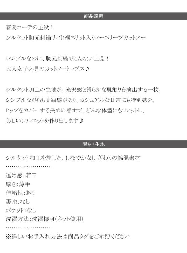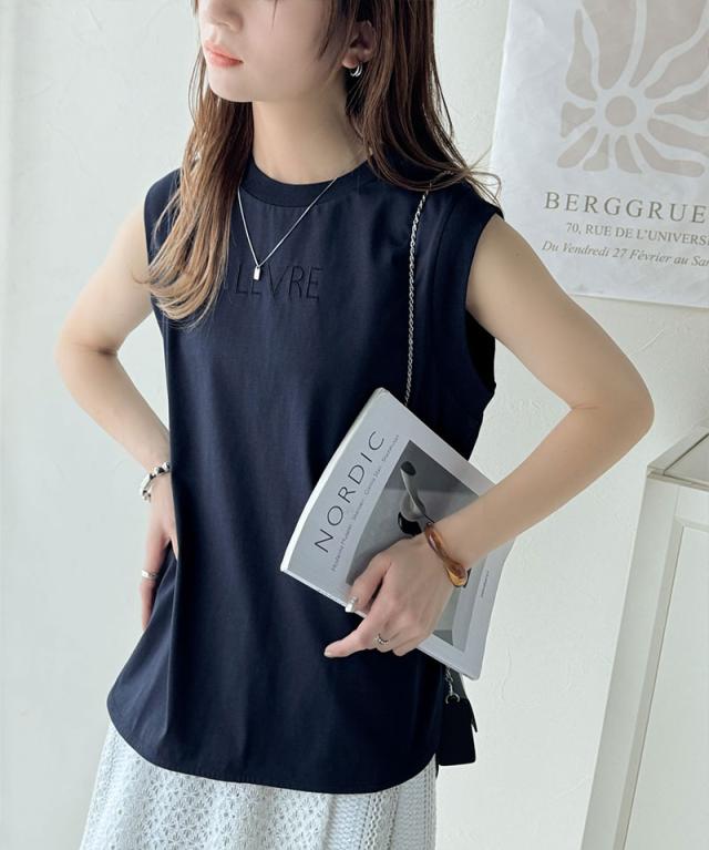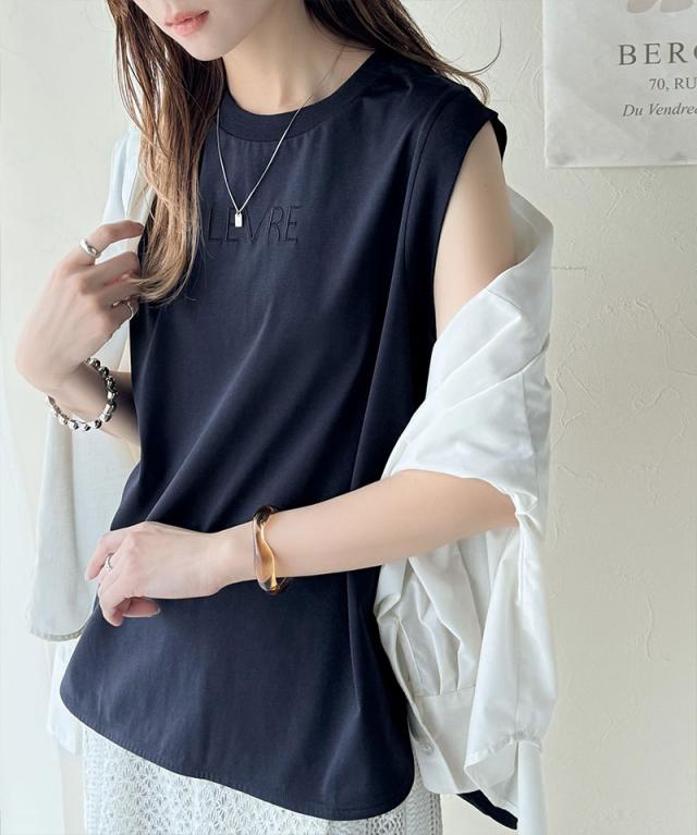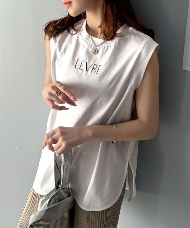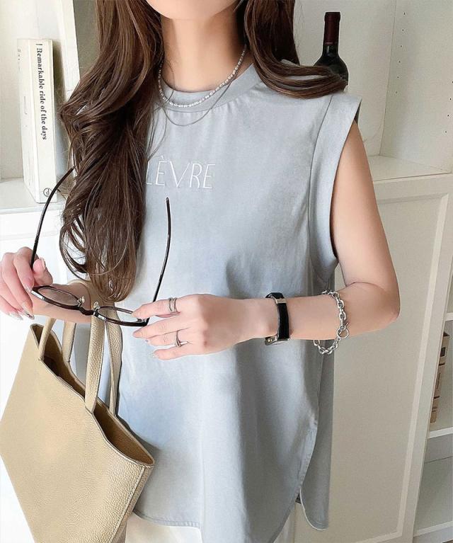 ★春夏コーデの主役!シルケット胸元刺繍サイド裾スリット入りノースリーブカットソー★